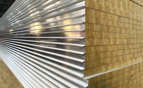 巖棉彩鋼板及其出產工藝實現了在工廠中通過自動化的裝備將巖棉和鋼板復合,從而改變了過去巖棉板材需現場復合的辦法,在滿足構筑物保溫隔熱,隔聲,防火等要求的前提下,更達到了精巧、高效、可靠、安全的方針。
